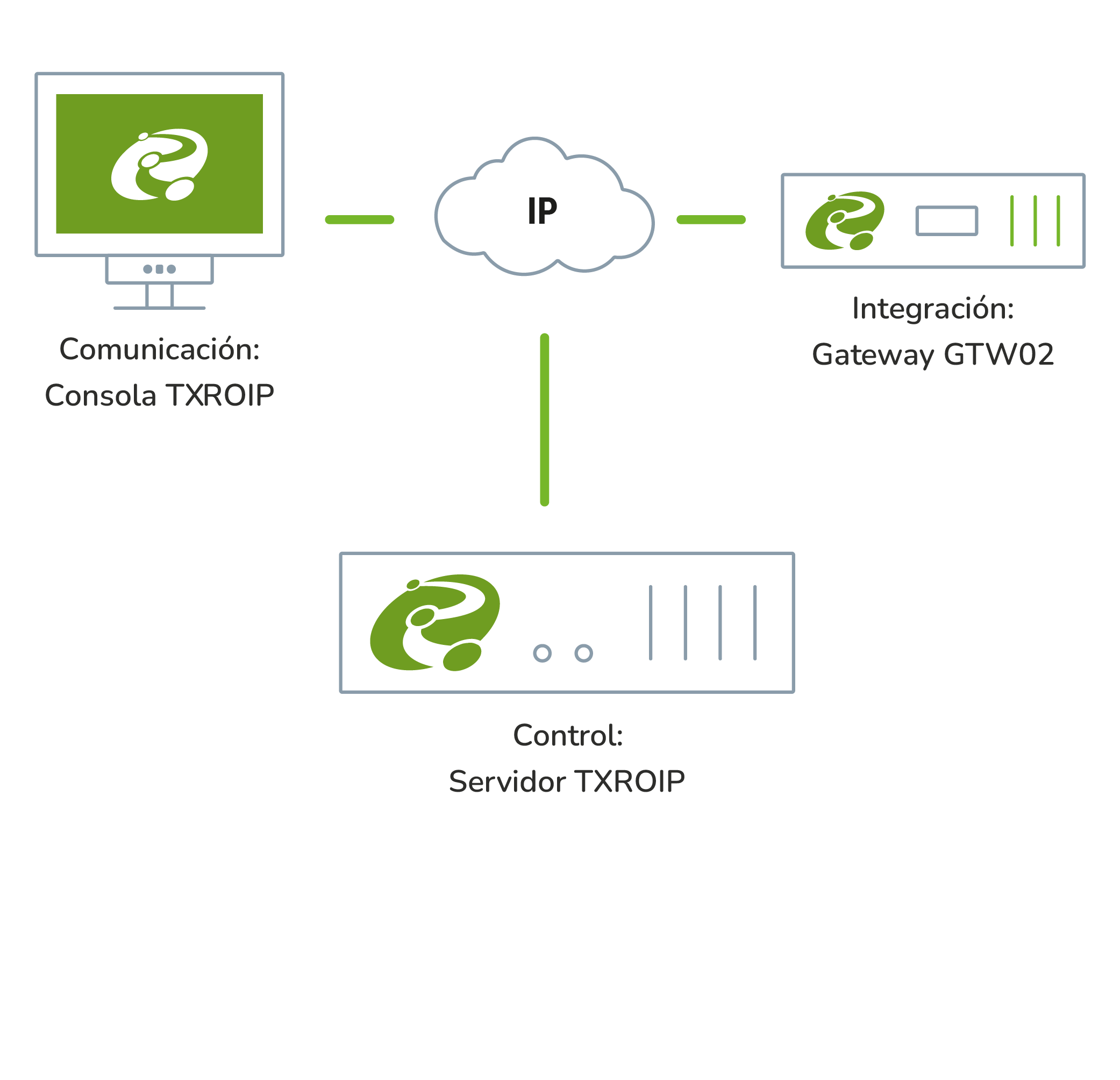 A través del Gateway TXROIP GW02 es posible comunicarse con puntos remotos, ya que la información viaja por la red IP hasta el centro de operaciones.